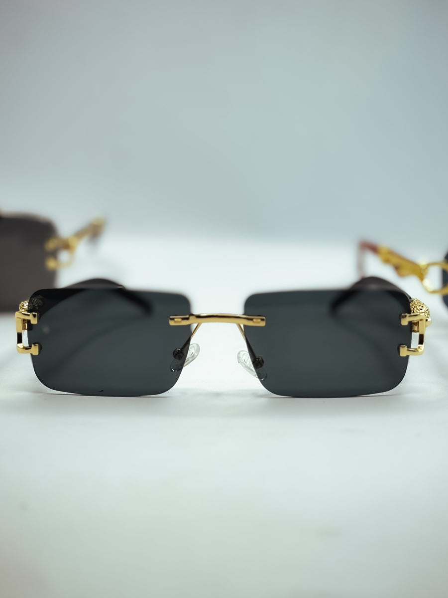 The leopard square Sunglasses feature a sleek, modern look with rimless frames, offering a trendy and sophisticated appeal suitable for both men and women
